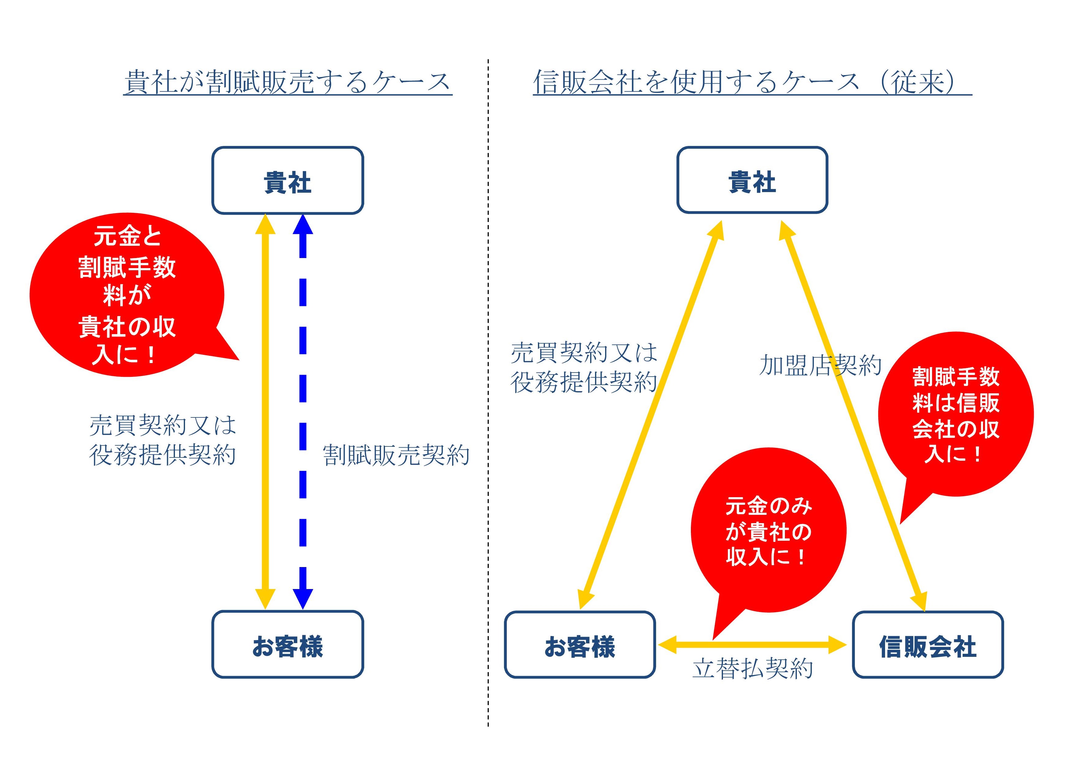 このような経営者の悩みを解決する一つの手段がこの自社割賦(自社クレジット・自社ローン)です。